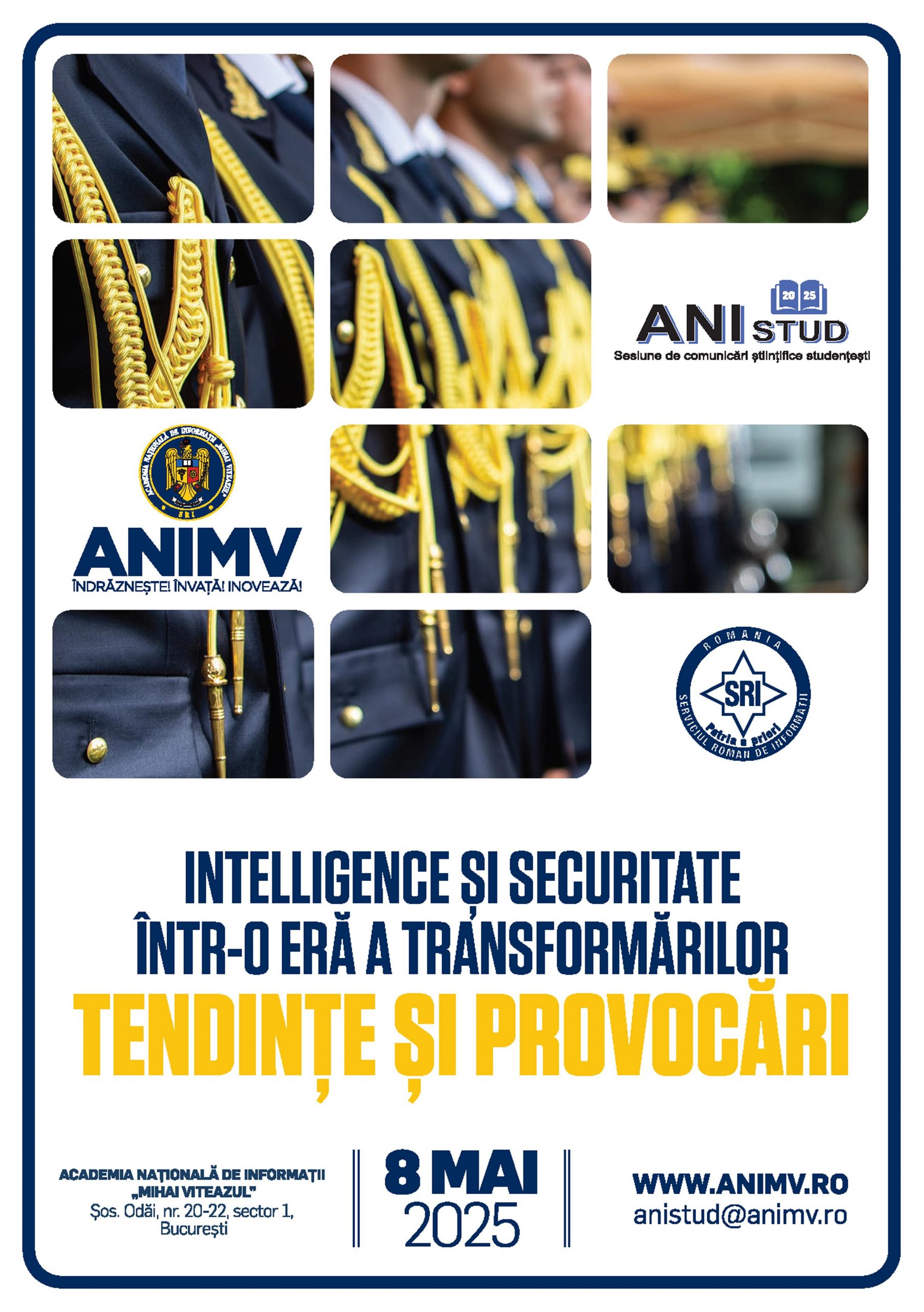 Pentru a continua tradiția sesiunii de comunicări științifice studențești ANISTUD, Academia Națională de Informații „Mihai Viteazul” (ANIMV) organizează ediția 2025 a conferinței, care se adresează studenților înmatriculați la programele de studii universitare de licență ale universităților militare, respectiv studenților de la programele de studii universitare de licență ale universităților civile care au fost înmatriculați pe locuri destinate Serviciului Român de Informații.